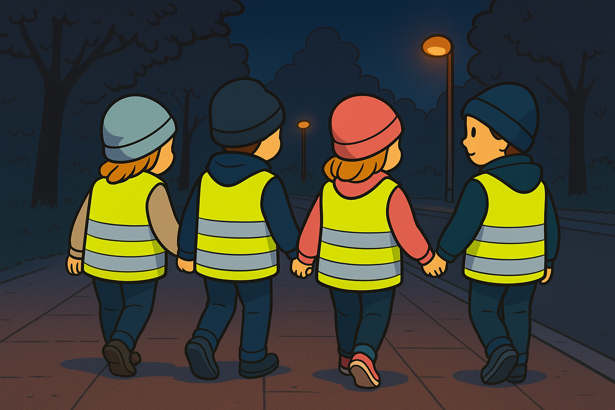 • Achten Sie auf die gute Sichtbarkeit der Kinder – Reflektoren und Warnwesten helfen enorm