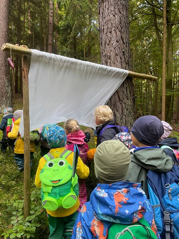 - Es wird gesammelt, gestaunt, gebaut: Hütten entstehen, Matschlöcher werden erobert, Pilze entdeckt und kleine Lagerplätze eingerichtet. Klasse!